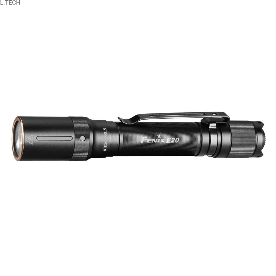 Fenix E20 V2.0 jest mniejszy i o połowę lżejszy od poprzednika, zapewnia dłuższy czas pracy i mocniejszy strumie światła 350 lumenów, dodatkowo posiada praktyczny klips, który ułatwia przenoszenie latarki.