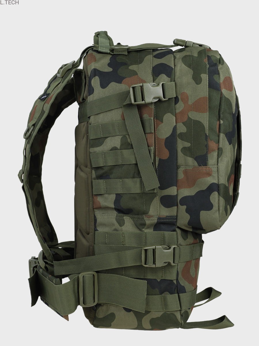 Wyposażony w panele modularne w systemie MOLLE/PALS od frontu oraz na bokach, które umożliwiają rozbudowę plecaka o dodatkowe kieszenie i zasobniki oraz dostosowanie ich rozmieszczenia do własnych potrzeb.