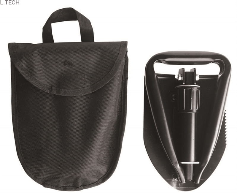 Mała i poręczna łopatka, składana, z pokrowcem.